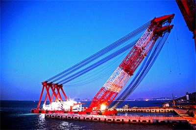 大型浮式起重機(jī)也稱為起重船或浮吊,可采用雙臂架結(jié)構(gòu),起重量可達(dá)3600噸,起升高度可達(dá)110米,廣泛應(yīng)用于沿海及近海的大型橋梁和設(shè)備的吊運(yùn)、安裝及打撈作業(yè)等。該類起重機(jī)起重量大、起升高度高,操作方便、靈活、準(zhǔn)確,維修方便,能滿足施工海域風(fēng)大、浪高、水深、流急等惡劣海況的要求,技術(shù)達(dá)到國內(nèi)領(lǐng)先水平。