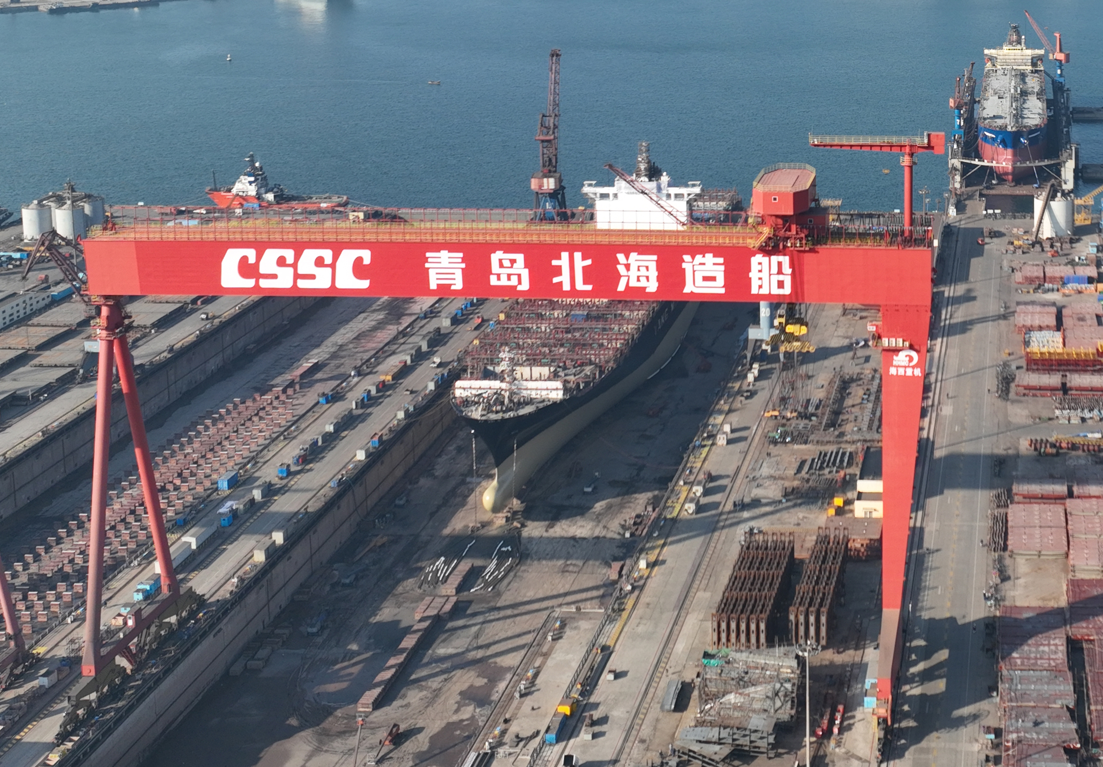 大型造船門式起重機(jī)(簡稱龍門吊)主要用于船廠船體制作場所以及大型鋼結(jié)構(gòu)裝焊平臺,可用于船體、海洋平臺和大型起重設(shè)備等大型鋼結(jié)構(gòu)的建造工作,對于船體等大型鋼結(jié)構(gòu)的翻身、合攏以及海工模塊、海工平臺的整體吊裝裝船或下水等作業(yè)優(yōu)勢尤為突出,效率高、成本低、安全風(fēng)險小,技術(shù)達(dá)到國內(nèi)領(lǐng)先水平。