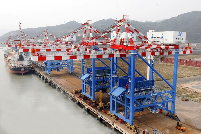 煙臺港萬華工業(yè)園碼頭1500t'h橋式抓斗卸船機(jī) |