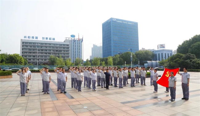 7月1日上午,船機(jī)廣場上驕陽映照著黨旗,中國船舶武漢船機(jī)36名新黨員胸口的黨徽熠熠生輝。在中國共產(chǎn)黨99歲生日的這一天,他們在黨旗下第一次莊嚴(yán)宣誓,說出一名共產(chǎn)黨員一生中最重要的承諾。
