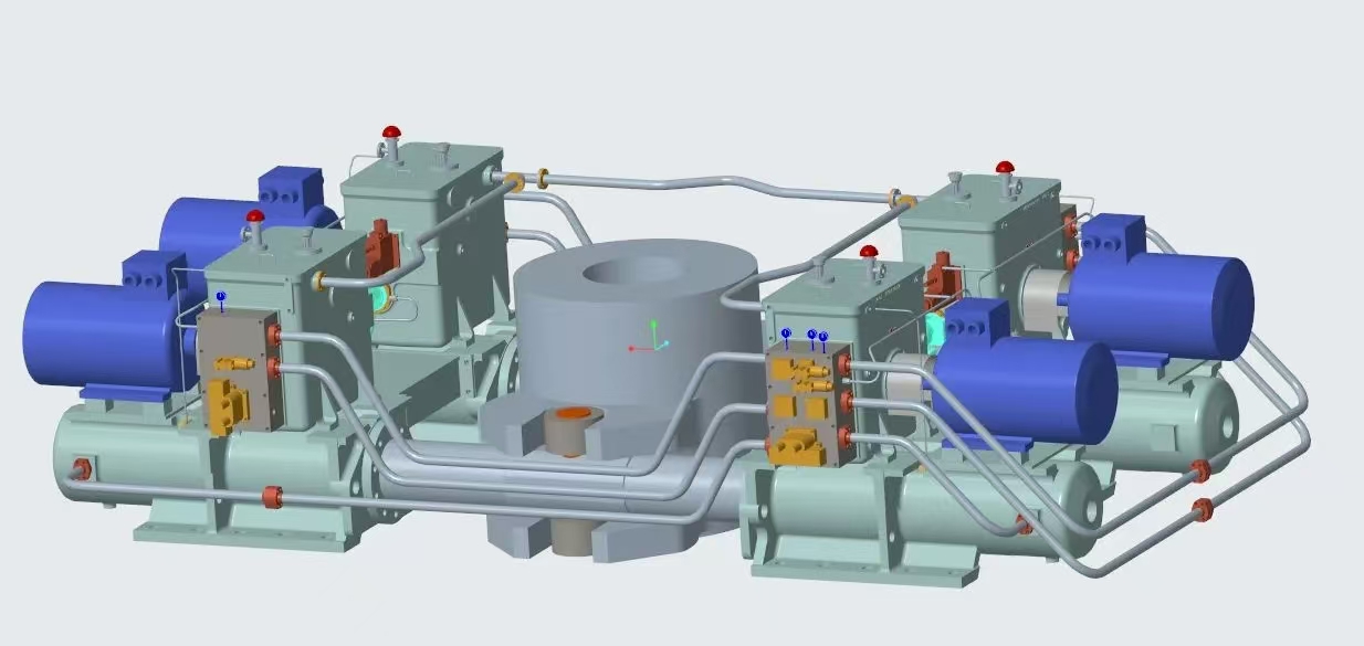 17000TEU雙燃料集裝箱船是綠色新能源船舶的典型代表,武漢船機(jī)為該船提供的舵機(jī)型號(hào)為FE42-1150-T050,最大工作扭矩可達(dá)11280kN·m,最大轉(zhuǎn)舵角度為37度,單臺(tái)舵機(jī)配備的四套動(dòng)力系統(tǒng)為雙柱塞四油缸拔叉式舵機(jī)結(jié)構(gòu),具有系統(tǒng)性集成度高、可靠性高、性能優(yōu)等特點(diǎn)。